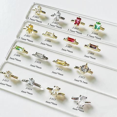 ใหม่แหวนทองคำแท้ชุบเพทายประดับเล็บเพชรสี่เหลี่ยม3D คริสตัลสามมิติเพชรพลอยเทียมโลหะผสม